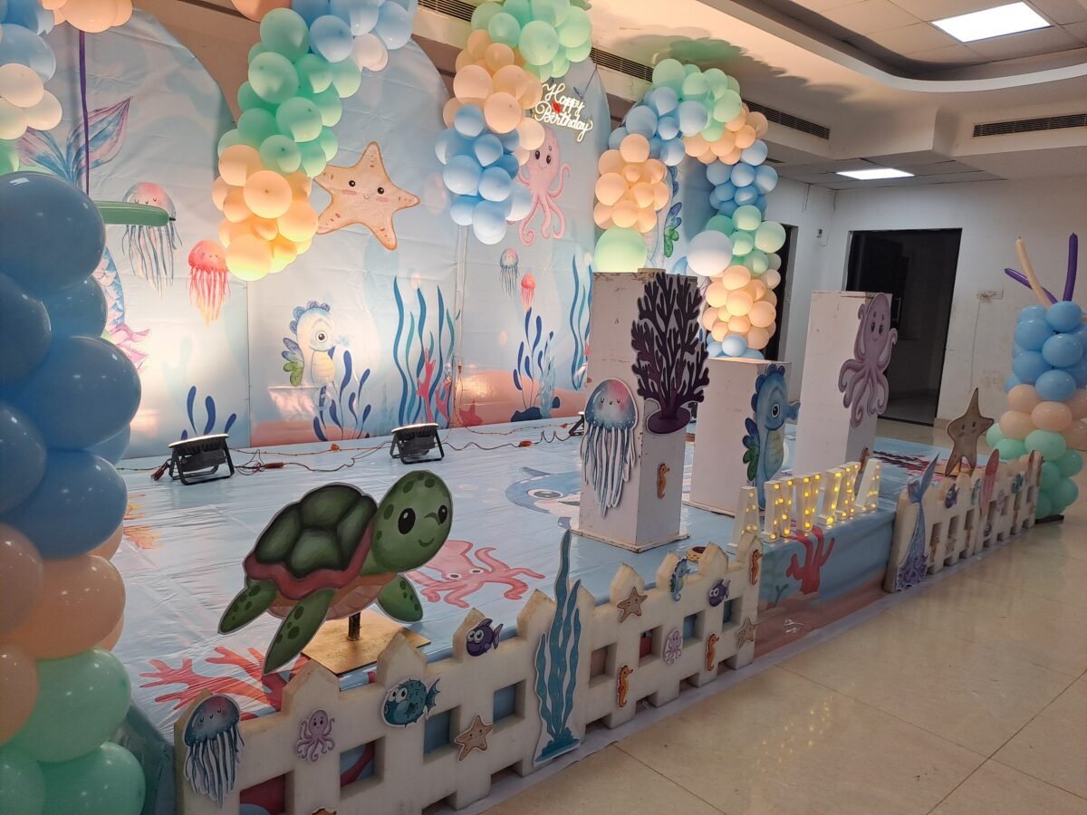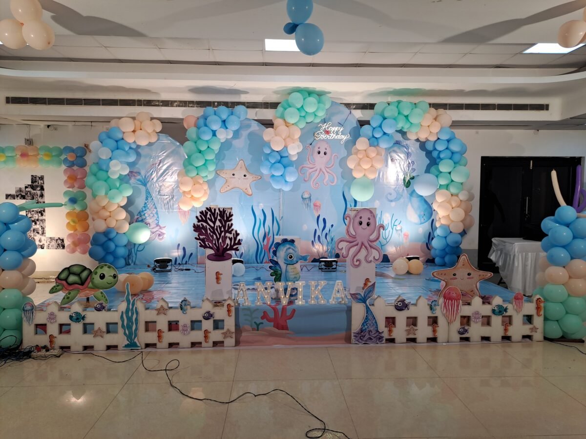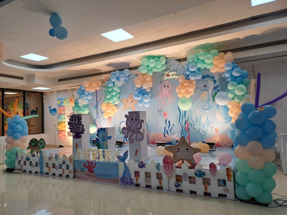 5 Mermaid Theme Cutouts Placed Near Backdrop as Shown The Image