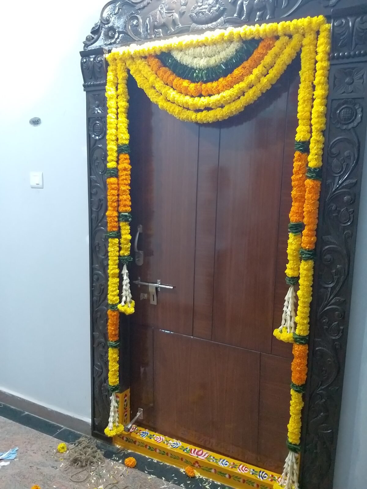 1 Main Door 2 Bed Room Doors Decorate With Marigold Flowers Same as Image