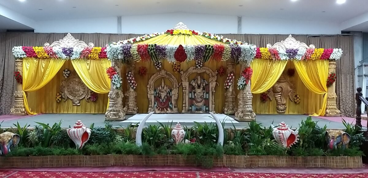 Gold Colour Cloth Draping Placed at Side Mandapam as Shown the Image